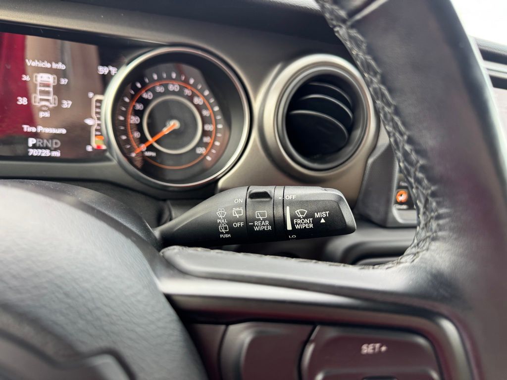 This Wrangler Unlimited also boasts impressive safety and security features, including electronic stability control, ParkView rear backup camera, and a security alarm. The spacious interior offers seating for up to five, with split-folding rear seats for added versatility.